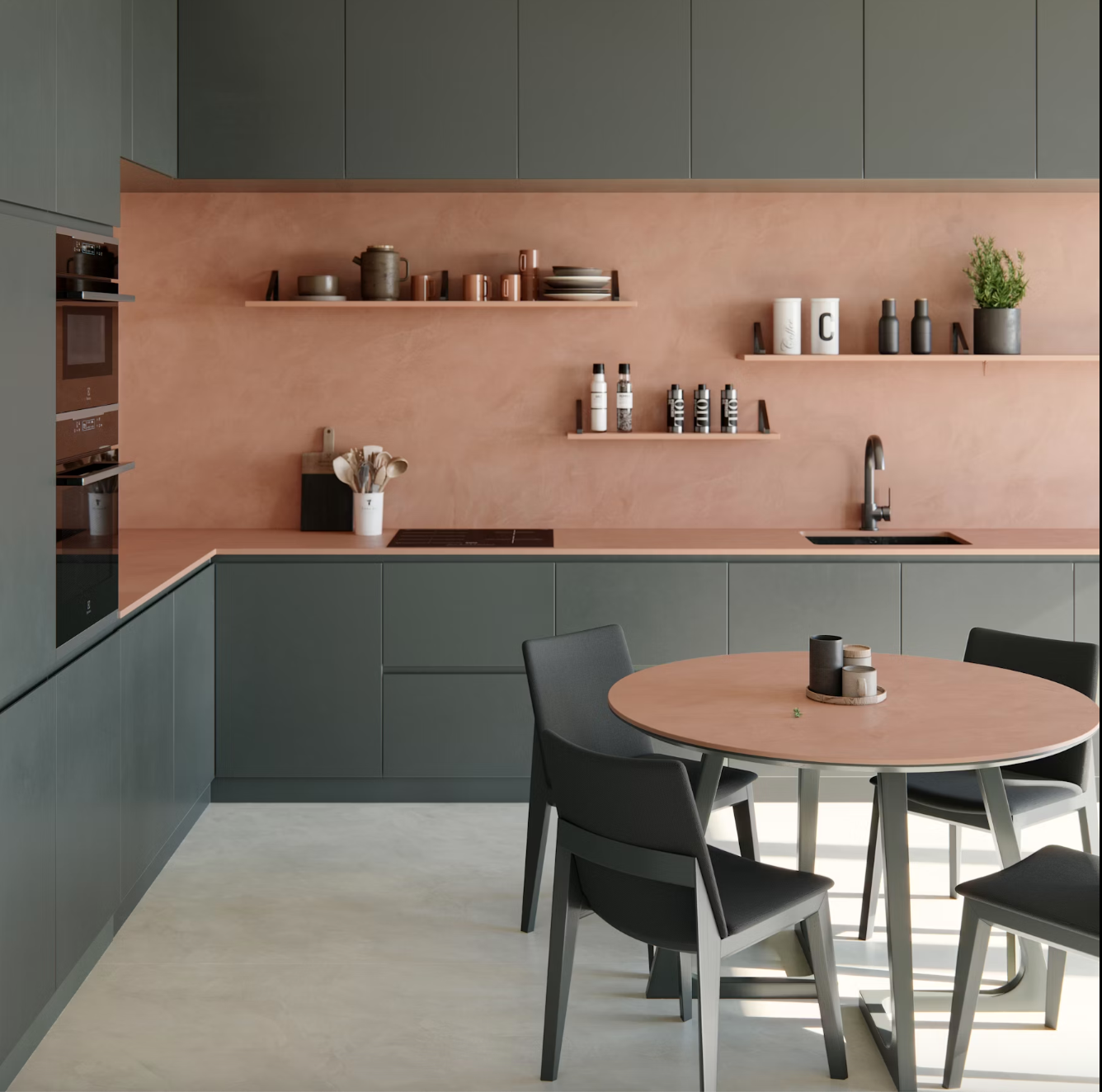 Šis paviršius puikiai tinka interjerams, kuriuose siekiama natūralumo ir ramybės. Dekton Umber dera su mediniais elementais, betonu, akmeniu ar metalu – suteikdamas visumai šilto balanso ir natūralaus vientisumo pojūtį.